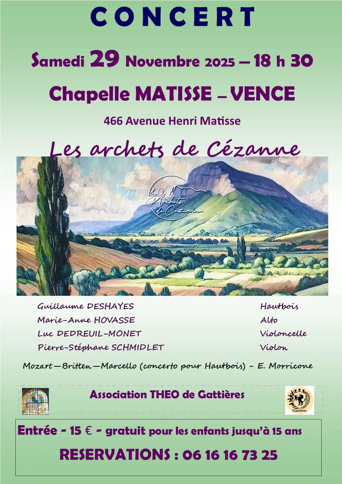 L’association Les Archets de Cézanne s’associe à l’association THEO de Gattières pour proposer un moment musical unique autour du hautbois.